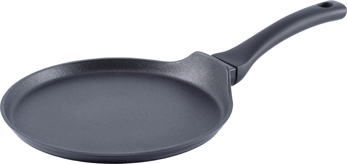 | Информация | - Сковорода изготовлена из кованого алюминия и оснащена антипригарным покрытием Pfluon Premium. Она подходит для всех типов плит, включая индукционные. - Удобная бакелитовая ручка с Soft Touch покрытием приятно лежит в руке и подходит для любого размера ладони. - Благодаря толстым стенкам (2.5 мм) и дну (3.5 мм) сковорода обладает отличной теплоемкостью, быстро нагревается и равномерно распределяет температуру, что позволяет быстро готовить блинчики. - Уникальное высокопрочное антипригарное покрытие устойчиво к царапинам, что позволяет использовать металлические аксессуары без опасений. - Для тех, кто заботится о здоровье, важно отметить, что это покрытие экологично и не содержит перфтороктановой кислоты. |