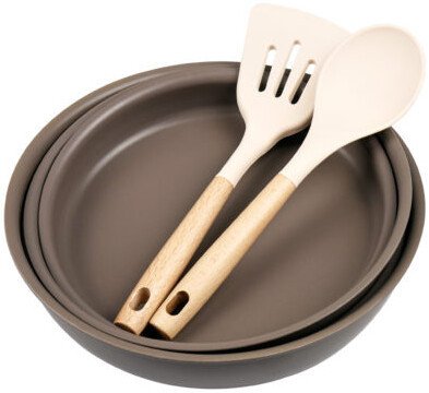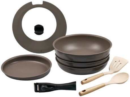 | Состав набора | универсальная 24 см, глубокая 24 см, блинная 22 см, вок 26 см, съемную ручку, крышку, лопатку и ложку |