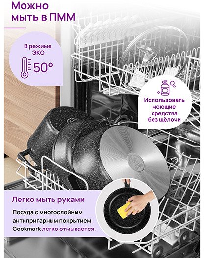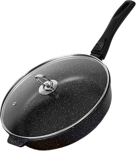 | Информация | - Глубокая сковорода «Черный мрамор» с крышкой и съемной ручкой из серии «Гармония вкуса» обеспечивает равномерный нагрев и распределение тепла, что позволяет сохранять полезные свойства и сочность продуктов. Стильный дизайн идеально впишется в любой кухонный интерьер. - Эта сковорода подходит для приготовления стейков, рыбы, мяса и овощей. Изготовленная из толстостенного литого алюминия, она обладает ультрапрочным двухслойным антипригарным покрытием Pfluon Cookmark, которое устойчиво к царапинам и безопасно для здоровья, не содержит PFOA и других вредных веществ. - Используйте сковороду для жарки котлет или картофеля с минимальным количеством масла — здоровая пища порадует любого гурмана. Приготовьте на завтрак оладьи или блюда из яиц: омлет, яичницу. На Масленицу удивите близких большой порцией блинов — ни один блинчик не подгорит! - Удобная ручка обеспечивает надежный захват при подаче еды с плиты на стол. Без ручки сковороду можно использовать в духовом шкафу как форму для запекания. Приготовьте румяную курочку в духовке и порадуйте своих близких. - Эксплуатация требует соблюдения некоторых правил: не нагревать без продуктов, дайте посуде остыть перед мытьем, используйте только деревянные, силиконовые и пластиковые лопатки без острых краев. Не мойте абразивными или щелочными средствами, а в ПММ выбирайте режим «Эко» с моющим средством без щелочи. - Сковорода подходит для стеклокерамических, газовых, электрических и комбинированных плит, но не для индукции. В духовке можно использовать с крышкой при температуре до 200°C, без крышки — до 240°C (обязательно снимите ручку!). - Эта кухонная утварь станет отличным подарком для женщин на День Рождения, 8 Марта и сделает процесс приготовления пищи более комфортным. Подарите универсальную вещь маме, подруге, сестре или бабушке — хорошая сковорода станет мечтой любой хозяйки и незаменимым помощником на вашей кухне! |
