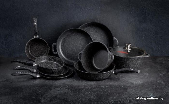 | Информация | Литая алюминиевая сковорода с антипригарным покрытием – посуда, которая подходит для газовых, электрических, стеклокерамических плит. Необходима для приготовления различных продуктов: мяса, овощей, рыбы и т.д. Коллекция с улучшенным четырёхслойным антипригарным покрытием. Дополнительный слой с мраморным эффектом увеличивает износостойкость и создаёт оттенок чёрного мрамора. Сковорода литая изготовлена из пищевого алюминия без канцерогенных веществ. Антипригарная сковорода имеет толстые стенки и утолщенное дно, что способствует равномерному распределению тепла и создает благоприятные условия для качественного процесса готовки. Антипригарное покрытие на водной основе не содержит вредных химических соединений. Посуда металлическая имеет гладкую поверхность, что облегчает процесс мытья. |