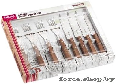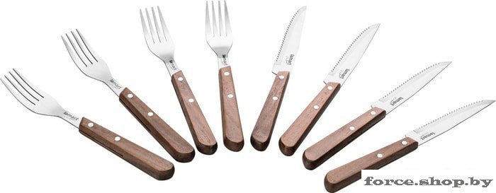 | Информация | Столовый набор ножей для стейка и вилок из высококачественной стали с эргономичными ручками из орехового дерева. |