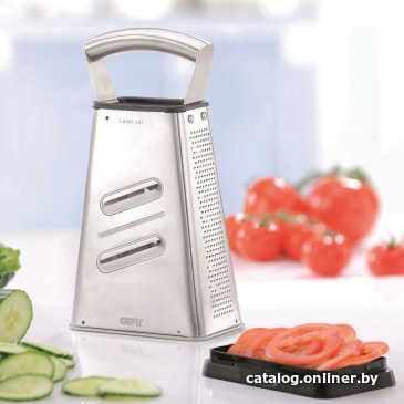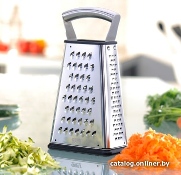| Информация | Благодаря специальной технологии лазерной заточки, терка имеет очень острые лезвия, которые которые гарантируют превосходный результат. Основание, выполненное из специального пластика, не скользит и не царапает посуду. Имеет контейнер для сбора натертых продуктов. Металлическая ручка обеспечивает удобный хват при использовании.Четыре стороны терки обеспечивают нарезку разными способами: слайсер ломтиками, крупная терка, мелкая терка, терка для крошки. |