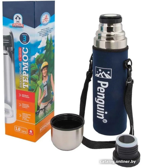 | Информация | ? Термос Penguin BK-20P 1л с узким горлом и двумя пробками: одна с кнопкой для удобного выливания жидкости, другая глухая для длительного сохранения температуры. Неопреновый чехол обеспечивает защиту от ударов и добавляет 3-4 градуса к температуре. Все пластмассовые части из первичной пластмассы. |