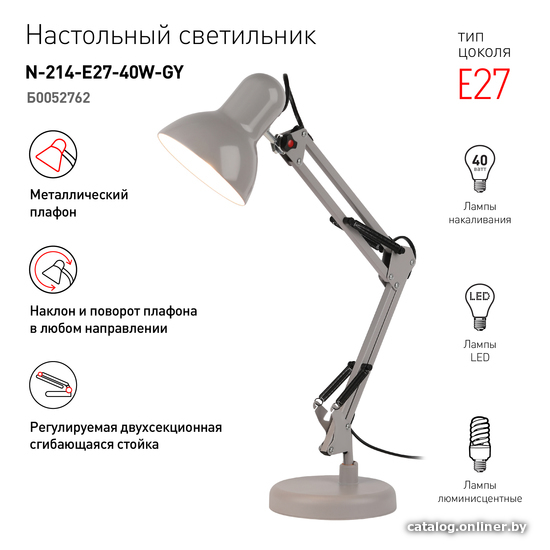 Настольная лампа ЭРА N-214-E27-40W-GY Е27 Б0052762 (серый)