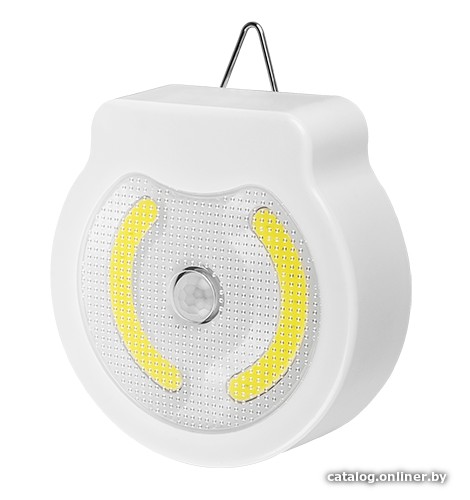 | Информация | Светодиодный фонарь-светильник с датчиком движения.Хорошая автономность работы на батарейках, отсутствие необходимости прокладки проводов, многообразие способов фиксации позволяют использовать светильник во многих местах, где необходима подсветка, но нет стационарного освещения: в шкафах, в кладовках, в гардеробных, на кухне, в гаражах и т.п.Компактность, легкость, экономичность позволяют использовать универсальный светильник в качестве фонаря: дома, на даче, в палатке, в автомобиле и т.п.Экономичный СОВ светодиод 200 люмен.2 режима работы (постоянный/автоматический).В автоматическом режиме происходит включение при срабатывании датчика движения (дистанция срабатывания до 3 метров, диапазон обнаружения 160 градусов), включение через 20 секунд.3 варианта крепления (магнитные держатели, лента липучка, петля-подвес). |