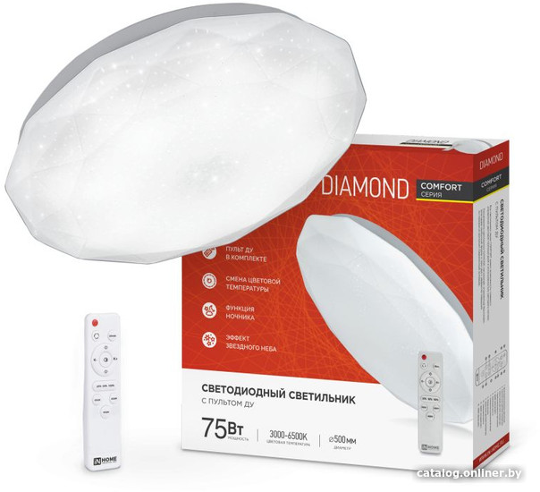 | Информация | ? Светодиодный светильник с современной системой управления и оригинальным корпусом в форме стилизованного ограненного бриллианта станет удобной и энергоэффективной заменой классической потолочной люстре. Красивый, удобный и экономичный светильник излучает равномерный, комфортный для глаз свет, без пульсаций. Пульт дистанционного управления позволяет изменять цветовую температуру от уютного теплого до холодного белого света или приглушить яркость освещения до режима ночника. Холодный дневной свет (6500К) создает яркое контрастное освещение, удобное для работы с мелкими предметами и деталями. Теплый свет 3000К придаст интерьеру уюта и будет способствовать расслаблению в период вечернего отдыха. Умный светильник оснащен специальным таймером выключения на 30 минут. Степень защиты IP40 оберегает внутреннее устройство светильника от частиц пыли. Осветительный прибор имеет встроенный дайвер и не нуждается в дополнительном обслуживании. Нормативный срок службы – 30 000 часов работы. Гарантия – 2 года. Применение Данные светильники разработаны для основного освещения бытовых и общественных помещений. Они будут отлично смотреться не только в квартирах и коттеджах (гостиные, спальни, коридоры, холлы, обеденные зоны, детские комнаты), но и в гостиницах, отелях, офисах и магазинах. Благодаря мощным светодиодам последнего поколения, светильник создает оптимальный уровень освещения во внутреннем пространстве._x000D_###BR###Низкое энергопотребление._x000D_###BR###Максимальная светоотдача._x000D_###BR###Оптимальное рассеивание светового потока._x000D_###BR###Устойчивый к выгоранию ПВХ-рассеиватель._x000D_###BR###Корпус из прочного негорючего пластика._x000D_###BR###Не содержит вредных веществ (ртуть, свинец и др.)._x000D_###BR###Защита по стандарту IP40._x000D_###BR###Функция ночника. |