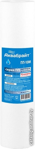 | Описание фильтра | Картридж АКВАБРАЙТ ПП-10М изготовлен из спеченного полипропилена с пищевым допуском.Назначение:Предназначен для механической очистки воды от песка, грязи и ржавчины.Рекомендуется для предварительной очистки воды.Технические характеристики:Минимальный O задерживаемых частиц от 10 мкм Типоразмер Slim Line 10 дюймов (h - 254 мм ± 1 мм)Рабочая температура от +2° до +35° С |