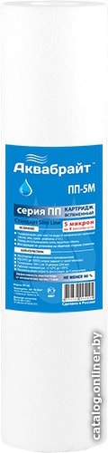 | Описание фильтра | Картридж АКВАБРАЙТ ПП-5М изготовлен из спеченного полипропилена с пищевым допуском.Назначение:Предназначен для механической очистки воды от песка, грязи и ржавчины.Рекомендуется для предварительной очистки воды.Технические характеристики:Минимальный O задерживаемых частиц от 5 мкм Типоразмер Slim Line 10 дюймов (h - 254 мм ± 1 мм)Рабочая температура от +2° до +35° С |
