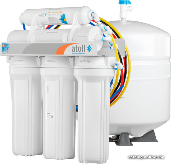 | Прочее | Первые три ступени очистки осуществляются префильтрами:###BR######BR### механическая очистка воды — картриджем atoll P5 из полипропилена. Задерживает примеси >5 мкм;###BR### сорбционная очистка — картриджем atoll GAC-10 (гранул.уголь) удаляет из воды хлор, улучшает органолептические свойства воды;###BR### тонкая механическая очистка — картриджем atoll P1 из полипропилена. Служит для удаления грязи и нерастворимых частиц >1 мкм.###BR###После предварительной фильтрации вода в atoll A-550m STD проходит следующие уровни очистки:###BR######BR### полиамидная тонкопленочная мембрана atoll TW40-1812-50 - очищает воду от 99,9% вредных примесей, таких как: тяжелые металлы, органические и неорганические соединения, бактерии и вирусы. Пропускает через себя только молекулы воды и кислорода;###BR### постфильтрация - минерализатором atoll GS-10CAL/RO. Он добавляет микроэлементы в очищенную воду, делает ее ещё вкуснее и нормализует значение рН. |