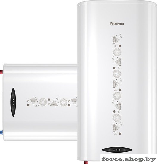 | Информация | Линейка плоских водонагревателей Thermex Aris – это изящное и надежное решение в вопросе горячего водоснабжения в квартире, на даче или офисе. Водонагреватель с вертикальной или горизонтальной установкой можно разместить на стене, используя доступное пространство как можно эффективнее. Сухой нагревательный элемент не только обеспечивает стабильный и мощный нагрев, но и прослужит дольше и надежнее. А привлекательный внешний корпус водонагревателя станет украшением вашего интерьера.###BR######BR###Компактный размер и универсальный монтаж. Водонагреватели серии Aris изготовлены по технологии Double Tank, благодаря которой корпус бака становится максимально плоским и одновременно вместительным, поскольку полезный объем не теряется. Глубина корпуса в серии Aris составляет от 25 до 29 мм. Такой водонагреватель проще разместить в помещении, а также можно спрятать в нишу. Помимо узкого корпуса, водонагреватели этой серии можно повесить на стену как в вертикальном, так и горизонтальном исполнении, что еще больше способствует экономии пространства.###BR######BR###Надежное защитное покрытие. Внутренние стенки бака покрыты Биостеклофарфором, обеспечивающим впечатляющую стойкость к коррозии, которая является одной из главных проблем долгой и интенсивной эксплуатации водонагревателей. Покрытие вступает в высокую адгезию со стенками бака, что позволяет ему при нагреве и остывании расширяться вместе с баком без дальнейшего образования трещин.###BR######BR###Сухой и быстрый нагрев. Внутри Thermex Aris установлен нагревательный элемент в специальной защитной колбе из нержавеющей стали – InoxDryHeat. Общая мощность ТЭНа для моделей от 50 до 100 литров составляет 2000 Вт, а для модели 30 литров – максимальная мощность 1500 Вт. Преимущество «сухого» нагрева в том, что сам нагревательный элемент надежно защищен от воды и химических составов, находящихся в ней. Это позволяет сохранить работоспособность ТЭНа надолго. В дополнение к этому, при выходе из строя нагревательного элемента, его всегда можно заменить без слива воды из бака. Скорость нагрева составляет от 50 до 135 минут в зависимости от объема бака.###BR######BR###Интуитивно-понятное управление. Механический регулятор на нижней крышке бака отвечает регулировку температуры. На терморегуляторе предусмотрен режим Eco, который обеспечивает оптимальное соотношение температуры нагрева и экономии ресурса работы водонагревателя. Справа от регулятора расположены кнопки переключения режимов мощности. В моделях от 50 до 100 литров выбор мощности варьируется: 800, 1200 и 2000 Вт; а в модели объемом 30 литров – 750 и 1500 Вт. Механическое управление более надежное в вопросе сохранения настроек нагрева: в случае перепадов электроэнергии, пользователю не понадобится повторно запускать оборудование и выстраивать режимы мощности.###BR######BR###Экономия на повторном нагреве. Для предотвращения теплопотерь, между стенками бака расположена термоизоляционная пена – Super Foam. Она позволяет сохранять воду внутри бака горячей надолго, поэтому пользователю не нужно постоянно запускать повторный нагрев, что позволит сохранить время и средства.###BR######BR###Гарантия безопасного использования. В комплекте поставки к каждой модели Thermex Aris идет устройство защитного отключения, которое срабатывает при утечке электрического тока, защищая пользователя от пораже