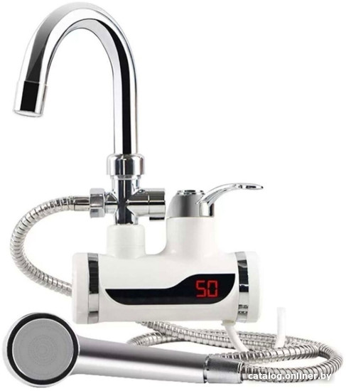 Проточный электрический водонагреватель кран+душ Saniteco WM-001-C2 с душем (белый)