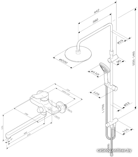 | Диаметр (ширина) верхнего душа | 220 мм |