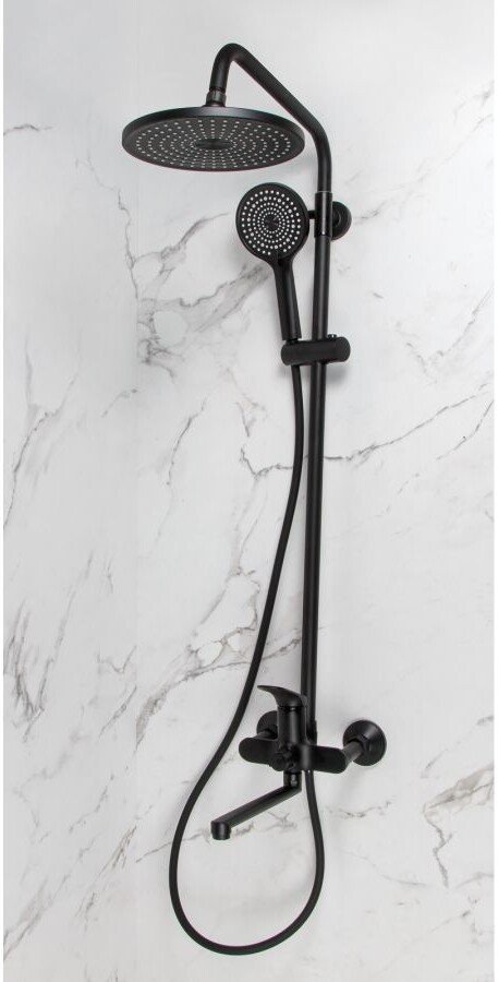 | Комплектация | верхний душ, штанга, ручной душ (лейка), держатель лейки, шланг, смеситель, излив для ванны |