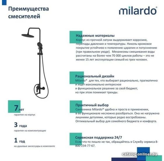| Комплектация | верхний душ, штанга, ручной душ (лейка), держатель лейки, шланг, смеситель, излив для ванны |