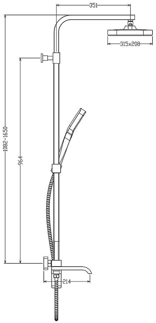 | Вылет верхнего душа | 351 мм |