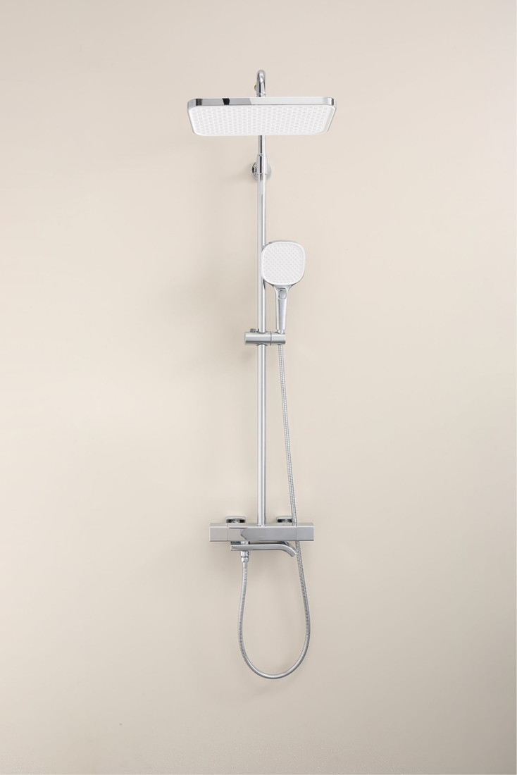 | Информация | ??Текст описания составлен при помощи искусственного интеллекта. - Стильный дизайн с прямоугольными формами - Термостатический смеситель для комфортной регулировки температуры - Латунный материал обеспечивает долгий срок службы - Возможность регулировки высоты ручного душа для удобства использования - Удобный монтаж на стену - Комплектация всем необходимым для установки и использования - Идеальный выбор для любителей современного дизайна и комфортных решений в ванной комнате. |