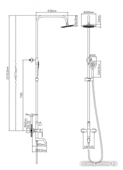 | Комплектация | штанга, ручной душ (лейка), держатель лейки, шланг, смеситель, излив для ванны |