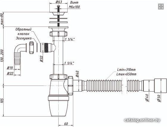 | Информация | Сифон с малым корпусом и отстойником для тюльпана и умывальника, выпуском с нержавеющей чашкой D63 мм и отводом для слива от стиральной машины. В комплекте удлинённый патрубок – удобен в установке сифона в ножку тюльпана, винт 100 мм для утолщённых моек и отвод в канализацию гибкая труба 40-40/50. |