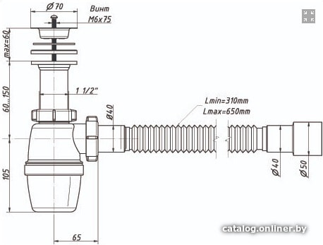| Информация | Сифон с большим корпусом и отстойником, литым выпуском, нержавеющей чашкой D70мм и гибкой трубой 40-40/50 для раковины или мойки. |