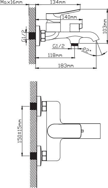 | Длина (вылет) излива | 183 мм |
