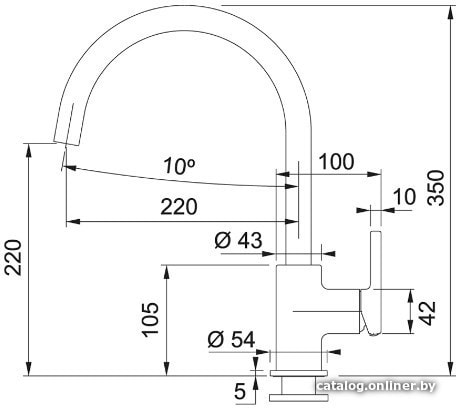 | Длина (вылет) излива | 220 мм |
