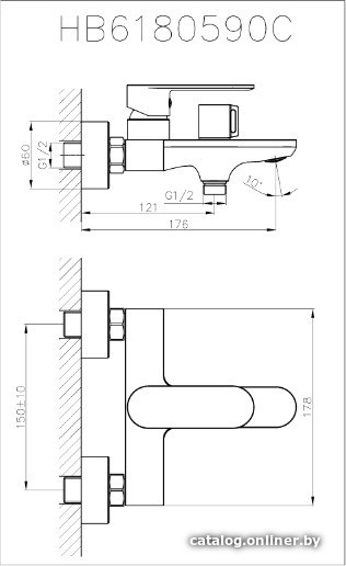 | Информация | Смеситель для ванны Haiba HB60590 с коротким изливом, хром |
