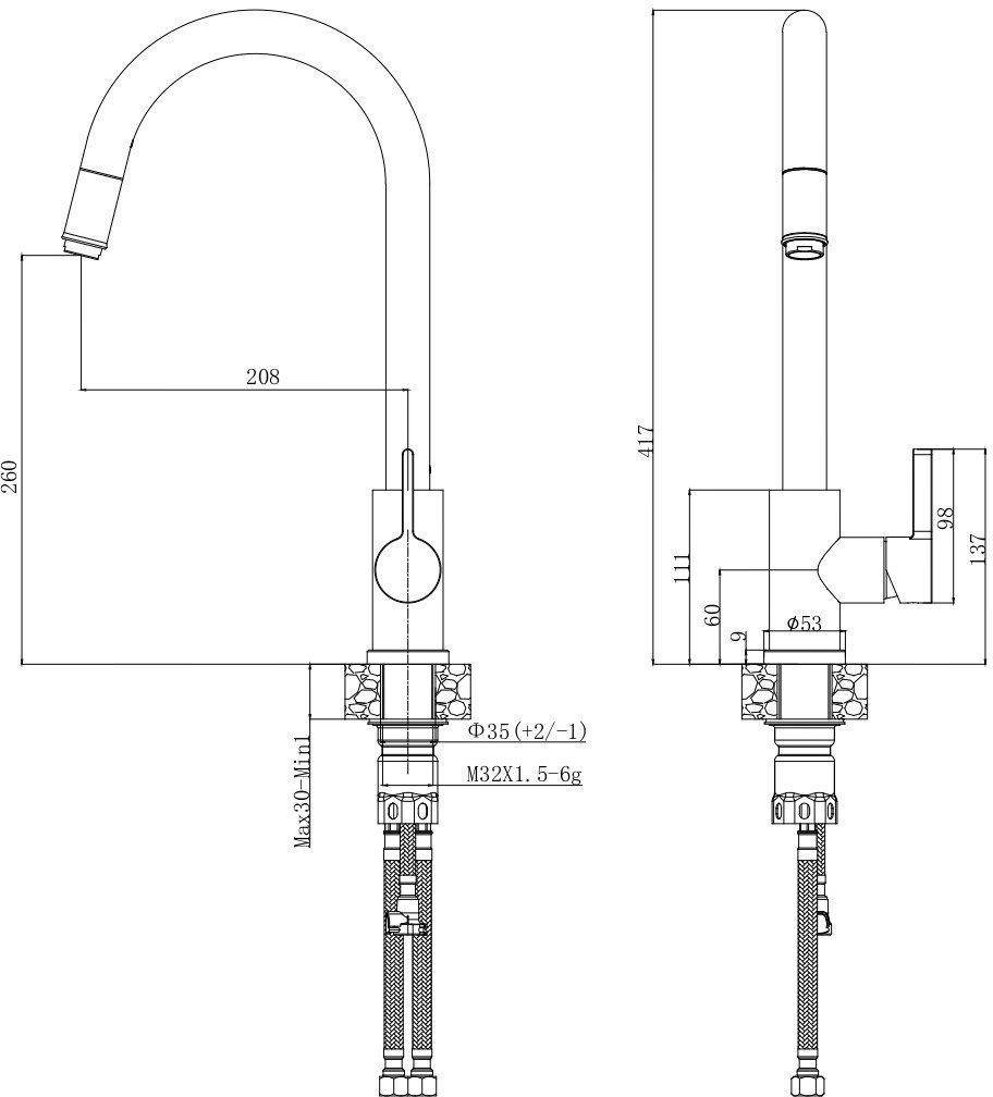 | Информация | Смеситель для кухни имеет удобный функционал и современный дизайн, который идеально дополнит интерьер Вашей кухни._x000D_ Детали смесителя изготовлены ??из высококачественной нержавеющей стали марки SUS 304 (пищевая сталь) и надежное хром-никелевое покрытие, устойчивые к ржавчине и коррозии, что гарантировано сохранит внешний вид смесителя спустя годы использования._x000D_ Смеситель оснащен вытяжным изливом, который незаменим при работе на кухне._x000D_ Встроенный керамический картридж 35 мм позволит равномерно изменять температуру воды, что сделает использование смесителя комфортным и приятным. |