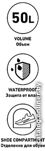 | Информация | Большой объем позволяет брать с собой все необходимое для тренировок. Есть четыре внешних кармана, один из которых предназначен для хранения обуви. |