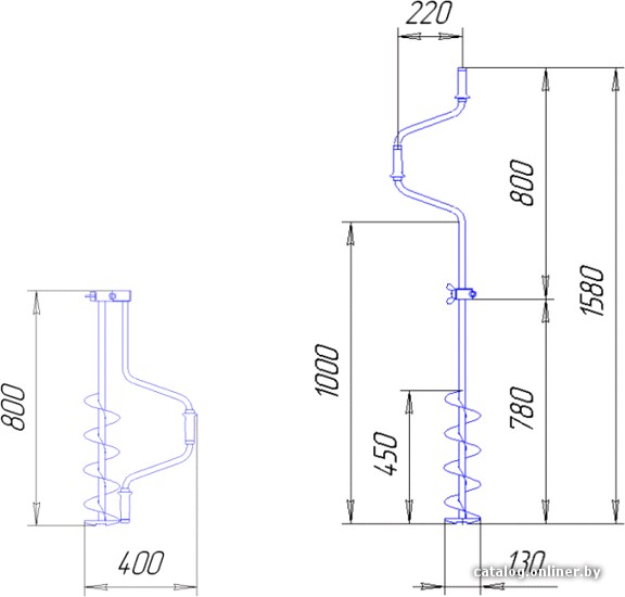 | Информация | Классический ледобур, верхняя ручка совпадает с осью ледобура. При складывании в транспортном положении рукоятка и шнек имеют одинаковую длину, поэтому ледобур удобен при транспортировке. |