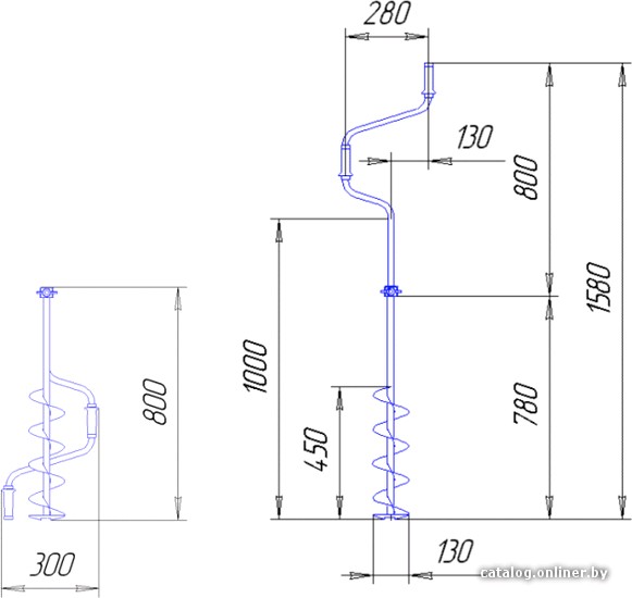 | Информация | Основное и единственное отличие двуручных ледобуров от классических – верхняя рукоятка ледобура смещена относительно оси ледобура на 130 мм, а нижняя на 150 мм. Такое расположение рукояток позволяет вращать ледобур одновременно двумя руками, тем самым, увеличивая скорость бурения лунок во льду. Кроме того, существенно уменьшаются габариты ледобура в транспортном положении. По всем остальным характеристикам двуручные ледобуры полностью соответствуют классическим. |
