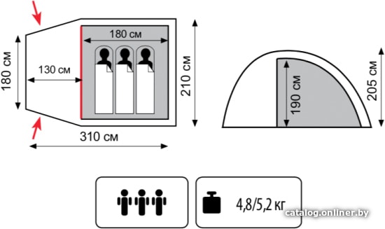 | Водостойкость тента | 2 000 мм вод. ст. |