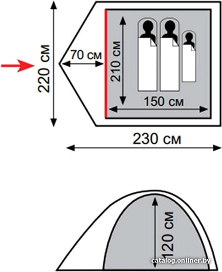 | Информация | С комфортом в палатку поместятся двое взрослых, легко - два взрослых и ребенок, очень плотно - трое человек.Очень легко и просто собирать: разложить внутреннюю палатку, вставить дуги в люверсы по углам дна, пристегнуть внутреннюю палатку клипсами к дугам, сверху накрыть тентом и закрепить.Водостойкость тента всего 2 000 мм, поэтому палатка летняя. Швы проклеены. Тент обработан пропиткой от УФ-лучей и искр. Два вентиляционных клапана.Дно из терпаулинга, его водостойкость 10 000 мм, палатка может стоять в луже и не промокнуть. |