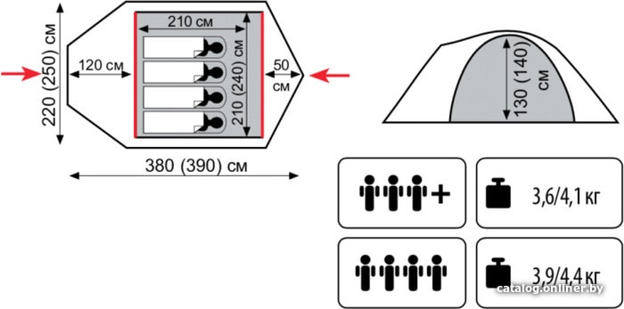 | Водостойкость тента | 4 000 мм вод. ст. |