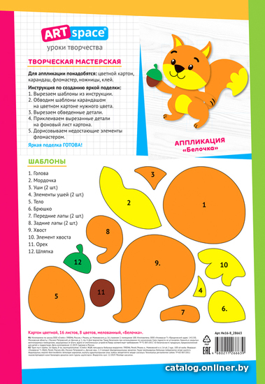 | Информация | Набор цветного картона ArtSpace серии «Белочка» A4 станет незаменимым помощником в создании шедевров. Размер: 200*290 мм. Плотность: 200 г/м2. То, что нужно для детского творчества, развития мелкой моторики, зрительно-моторной координации, логического мышления и воображения! На обороте предложен интересный вариант поделок.Формат: А4;Количество листов: 16 л;Количество цветов: 8 л;Двусторонний: нет. |