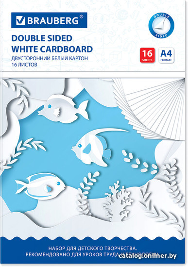 | Информация | Набор белого картона BRAUBERG предназначен для творчества и хобби, рекомендован для уроков труда и технологии. Может использоваться детьми с трехлетнего возраста. Мелованный картон обладает плотностью 200 г/м2, имеет гладкую, идеально белую (глянцевую) поверхность с одной стороны и белую матовую поверхность с оборота. Его можно использовать как для поделок, так и для рисования, а также в качестве основы для аппликаций. С помощью этого картона ребенок сможет воплотить в жизнь любую творческую задумку. В наборе 16 листов двустороннего картона белого цвета формата А4 (200х290 мм). Творческая инструкция по созданию аппликации на обороте. |