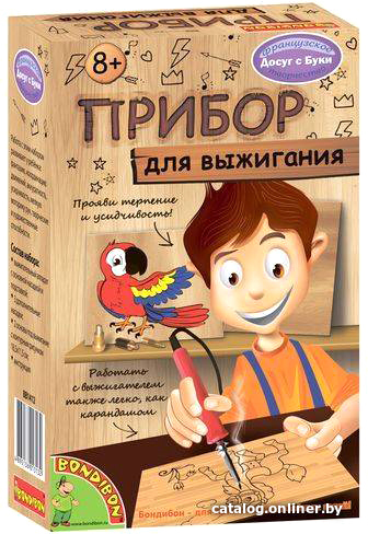 | Информация | Выжигательный аппарат является замечательным прибором для творчества. С его помощью и дети, и даже взрослые смогут создавать интересные и разнообразные картины на деревянной основе. Помимо выжигательного прибора с удобной рукояткой, в данный набор входят три дополнительных насадки, которые помогут расширить возможности его использования и позволят создавать еще более уникальные рисунки. Также к набору прилагаются две основы для выжигания с уже нанесенным контурным рисунком. Нужно всего-навсего обвести контуры – и замечательный рисунок готов! Он станет отличным подарком для друзей и близких. Искусство выжигания по дереву – не просто интересная игра, но и настоящий творческий процесс! Комплектация: выжигательный аппарат, 2 основы для выжигания, 3 насадки, инструкция |