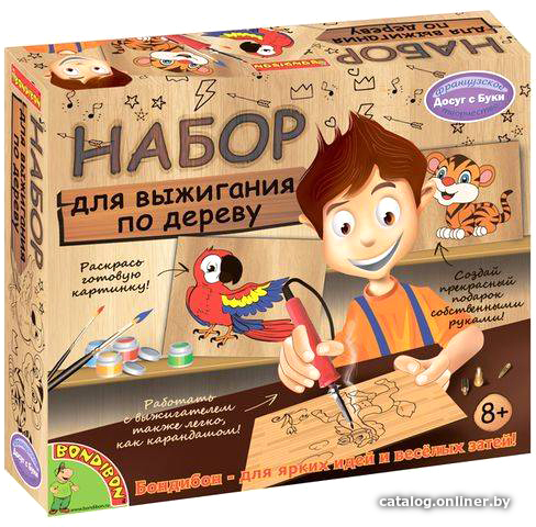 | Информация | Набор для выжигания по дереву станет отличным подарком не только для детей, но и для взрослых. В него входит прибор для выжигания с основной насадкой и подставкой, сама ручка прибора сделана из качественных материалов и имеет эргономичную форму. Также в набор входит деревянная основа для выжигания с уже нанесенным контурным рисунком, и три дополнительных насадки. С их помощью можно выжечь еще более разнообразные, рельефные рисунки. В наборе присутствуют шесть красок и кисточка, поэтому полученный выжженный рисунок можно будет ярко раскрасить! |