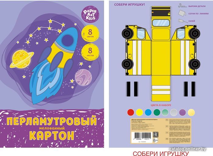 | Информация | Набор цветного перламутрового картона из 8 листов от компании “Канц-Эксмо” отличается качественным наполнением: цветные листы из мелованного картона (210гр/м), которые отлично сгибаются и не оставляют заломов, хорошо прокрашены, яркие и насыщенные цвета, а упаковка имеет привлекательный дизайн. Работа с картоном – это самый эффективный и недорогой способ развить у ребенка воображение, сформировать правильное восприятие цвета и мелкую моторику, о важности которой не перестают твердить школьные педагоги и психологи. На обороте папки содержится занимательная игра «Собери игрушку» (фигура для вырезания и склеивания), которая делает набор развивающей продукцией для детей. Победитель в номинации “Золотой медвежонок 2020”. Количество цветов: 8 |