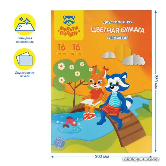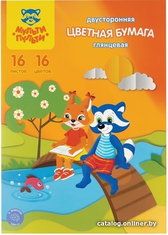 Набор цветной бумаги Мульти-пульти Приключения Енота ЦБм16-16дв_31612 (16 цв)