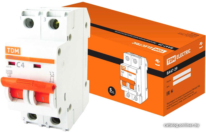 Выключатель автоматический TDM Electric ВА 47-29 2Р 4А (C) 4.5кА SQ0206-0087