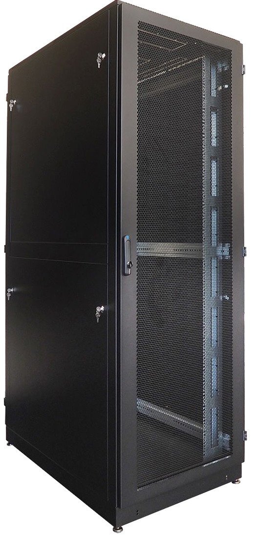 | Информация | Шкаф серверный ШТК-М предназначен для размещения телекоммуникационного оборудования, организации центров хранения и обработки данных. Класс защиты – IP20.###BR###Шкаф имеет разборную каркасную конструкцию. Лёгок в сборке. Состоит из основания, крыши и двух сварных рам, соединённых комплектом швеллеров. На боковых элементах рамы выполнена дополнительная перфорация под закладные гайки. Стандартно шкафы комплектуются задней металлической стенкой и тремя видами дверей: цельнометаллической, с тонированным ударопрочным стеклом или дверью с перфорацией. Возможна комплектация двумя дверьми, исключающая заднюю стенку. В шкафах 18–36U дверь фиксируется усиленным точечным замком, в 42–48U – ригельным. Двери имеют как правую, так и левую навеску, угол открытия 180 °. Усиленная конструкция допускает распределённую статическую нагрузку до 1200 кг.###BR###В крышу и основание шкафов глубиной 600 мм возможна установка до трёх вентиляторных модулей серии R-FAN, шкафов глубиной 800 мм – четырёх, а шкафов глубиной 1000 и 1200 мм – шести. Также в этих элементах имеется дополнительная перфорация и отверстия под кабельный ввод 212 ? 110 мм и/или 422 ? 55 мм с возможностью установки щёточных вводов серии КВ-Щ. Предусмотрена установка винтовых опор (ножек) позволяющих компенсировать неровности пола (входят в комплект поставки). Возможна установка поворотных роликов различной нагрузочной способности (в комплект поставки не входят).###BR###Доступ для монтажа, коммутации и обслуживания оборудования возможен с четырёх сторон: через боковые легкосъёмные стенки, переднюю и заднюю двери.###BR###В базовой комплектации шкаф имеет четыре оцинкованные вертикальные направляющие, регулируемые по глубине. Предусмотрена система заземления (провода для заземления всех деталей шкафа входят в комплект поставки).###BR###Покрытие – краска полимерно-порошковая, шагрень с предварительным фосфатированием.###BR###Шкафы поставляются в разобранном виде и компактно упаковываются в три транспортных места.###BR###Обновлённая конструкция###BR###• Новая конструкция рам с полузамкнутым профилем позволила увеличить несущую способность шкафа до 1200 кг. Также благодаря ей шкафы соединяются между собой без дополнительных крепёжных элементов. Внутренняя поверхность рам по вертикали получила перфорацию, создающую дополнительное монтажное пространство для установки органайзеров, шин заземления и прочих аксессуаров.###BR###• Габаритная ширина шкафов теперь составляет 598 и 798 мм. Расширен перечень доступных типоразмеров шкафа по глубине до 1200 мм. Эти изменения позволяют использовать ШТК-М в качестве серверных шкафов при построении ЦОД.###BR###• Основание изделия выведено в размер с рамой – каркас шкафа обрёл монолитную целостность.###BR###• Горизонтальные монтажные швеллеры унифицированы. В комплекте шкафа поставляются швеллеры единого типа, что упрощает сборку.###BR###• Вертикальные юнитовые направляющие получили опору на основание, благодаря чему повысилась их несущая способность. Вертикальные юнитовые направляющие для шкафов шириной 800 мм стали цельными, без дополнительных проставок, – их монтаж стал ещё удобнее. Также в них предусмотрены окна под установку аксессуаров, создающие дополнительное монтажное пространство.###BR###• Применение запрессованных резьбовых элементов существенно упростило сбо