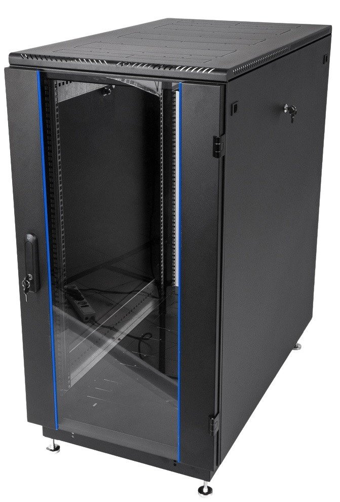 | Информация | Шкаф телекоммуникационный ШТК-М предназначен для размещения телекоммуникационного оборудования, организации центров хранения и обработки данных. Класс защиты – IP20.###BR###Шкаф имеет разборную каркасную конструкцию. Лёгок в сборке. Состоит из основания, крыши и двух сварных рам, соединённых комплектом швеллеров. На боковых элементах рамы выполнена дополнительная перфорация под закладные гайки. Стандартно шкафы комплектуются задней металлической стенкой и тремя видами дверей: цельнометаллической, с тонированным ударопрочным стеклом или дверью с перфорацией. Возможна комплектация двумя дверьми, исключающая заднюю стенку. В шкафах 18–36U дверь фиксируется усиленным точечным замком, в 42–48U – ригельным. Двери имеют как правую, так и левую навеску, угол открытия 180 °. Усиленная конструкция допускает распределённую статическую нагрузку до 1200 кг.###BR###В крышу и основание шкафов глубиной 600 мм возможна установка до трёх вентиляторных модулей серии R-FAN, шкафов глубиной 800 мм – четырёх, а шкафов глубиной 1000 и 1200 мм – шести. Также в этих элементах имеется дополнительная перфорация и отверстия под кабельный ввод 212 ? 110 мм и/или 422 ? 55 мм с возможностью установки щёточных вводов серии КВ-Щ. Предусмотрена установка винтовых опор (ножек) позволяющих компенсировать неровности пола (входят в комплект поставки). Возможна установка поворотных роликов различной нагрузочной способности (в комплект поставки не входят).###BR###Доступ для монтажа, коммутации и обслуживания оборудования возможен с четырёх сторон: через боковые легкосъёмные стенки, переднюю и заднюю двери.###BR###В базовой комплектации шкаф имеет четыре оцинкованные вертикальные направляющие, регулируемые по глубине. Предусмотрена система заземления (провода для заземления всех деталей шкафа входят в комплект поставки).###BR###Покрытие – краска полимерно-порошковая, шагрень с предварительным фосфатированием.###BR###Шкафы поставляются в разобранном виде и компактно упаковываются в три транспортных места.###BR###Обновлённая конструкция###BR###• Новая конструкция рам с полузамкнутым профилем позволила увеличить несущую способность шкафа до 1200 кг. Также благодаря ей шкафы соединяются между собой без дополнительных крепёжных элементов. Внутренняя поверхность рам по вертикали получила перфорацию, создающую дополнительное монтажное пространство для установки органайзеров, шин заземления и прочих аксессуаров.###BR###• Габаритная ширина шкафов теперь составляет 598 и 798 мм. Расширен перечень доступных типоразмеров шкафа по глубине до 1200 мм. Эти изменения позволяют использовать ШТК-М в качестве серверных шкафов при построении ЦОД.###BR###• Основание изделия выведено в размер с рамой – каркас шкафа обрёл монолитную целостность.###BR###• Горизонтальные монтажные швеллеры унифицированы. В комплекте шкафа поставляются швеллеры единого типа, что упрощает сборку.###BR###• Вертикальные юнитовые направляющие получили опору на основание, благодаря чему повысилась их несущая способность. Вертикальные юнитовые направляющие для шкафов шириной 800 мм стали цельными, без дополнительных проставок, – их монтаж стал ещё удобнее. Также в них предусмотрены окна под установку аксессуаров, создающие дополнительное монтажное пространство.###BR###• Применение запрессованных резьбовых элементов существенно уп