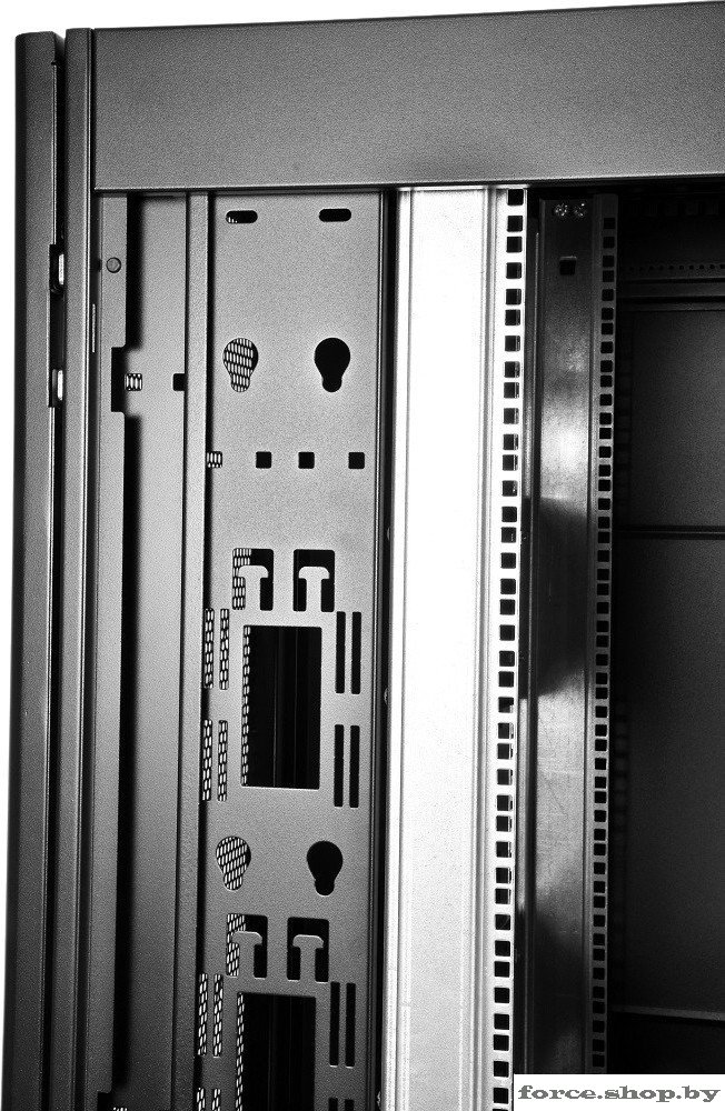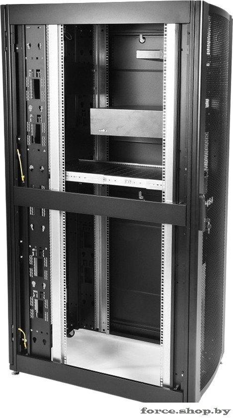 | Информация | Шкаф телекоммуникационный ШТК-СП предназначен для размещения электронного и электротехнического оборудования, аппаратуры телекоммуникационных систем, передачи и хранения информации в закрытых помещениях.###BR###Вид климатического исполнения О4.2 по ГОСТ 15150 с предельными рабочими температурами воздуха при эксплуатации от +1 до +45 °С и относительной влажности не более 80 % при +20 °С. Шкаф поставляется в полностью собранном виде с установленными металлическими дверями, задней и боковыми стенками, имеет степень защиты IP20. Предусмотрена возможность установки панелей системы несущих конструкций 482,6 мм по ГОСТ 28601.1 (19” по МЭК 297).###BR###Шкаф имеет две массивные сварные рамы, соединённые комплектом швеллеров, что обеспечивает повышенную жёсткость конструкции. В зависимости от комплектации шкаф может поставляться с передней и задней перфорированными дверьми (одностворчатыми или двухстворчатыми), усиленными боковыми стенками. Двери фиксируются замками с ручкой. Возможна установка двери как с левой, так и с правой стороны. Конструкция дверей допускает их быстрое снятие и установку без инструментов. Верхние и нижние боковые проёмы закрываются отдельными стенками. Стенки фиксируются точечными замками. Крыша имеет заглушённые отверстия под кабельные вводы. Также в крыше предусмотрены отверстия для крепления кабельных каналов фиксатором КГЛ (в комплект поставки не входит).###BR###Открытое основание шкафа обеспечивает свободный доступ к коммутациям в подготовленном помещении. В нижней части шкафа возможна установка панелей различного назначения (например, фальшпол ОС-ШТК-СП-х). Кроме того, в основании шкафа установлены регулируемые опоры и транспортировочные ролики для перемещения шкафа без оборудования. Предусмотрено крепление шкафа к полу (кронштейны в базовой поставке крепят шкаф к деревянному поддону). Доступ для монтажа, коммутации и обслуживания оборудования возможен с четырёх сторон: через боковые стенки, переднюю и заднюю двери. В базовой комплектации шкаф имеет 4 оцинкованные вертикальные направляющие, регулируемые по глубине. Предусмотрена система заземления (провода для заземления всех деталей шкафа входят в комплект поставки). Тыльная сторона шкафа стандартно комплектуется вертикальными кабельными органайзерами шириной 116 мм, перфорированными для удобства размещения блоков розеточных (PDU), укладки и фиксации кабелей. Органайзеры имеют систему отверстий для быстрых установки и снятия блоков и оборудования различных типов без инструментов. |