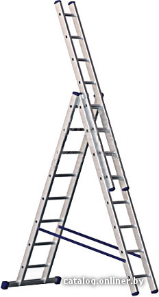 | Информация | Это лестницы, которые сочетают в себе сразу функции приставной лестницы, стремянки и двухсекционной лестницы. Эта лестница собрала в себе все преимущества односекционной и двухсекционной лестницы. Состоящая из трех частей она может использоваться в широком диапазоне высот. Имеется возможность использовать верхнюю секцию как отдельную небольшую приставную лестницу. |