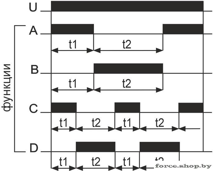 | Информация | Для включения / выключения потребителей в системах автоматики на заданный отрезок времени. Установка двух независимых временных выдержек t1 и t2 (время работы и время перерыва).###BR###Особенности###BR###Многофункциональное (4 функции). Установка двух независимых временных выдержек t1 и t2 (время работы и время перерыва).###BR###Область применения###BR###В вентиляционных, отопительных, осветительных, сигнализационных и т.п. системах, где необходимо включение нагрузки на установленный отрезок времени. |