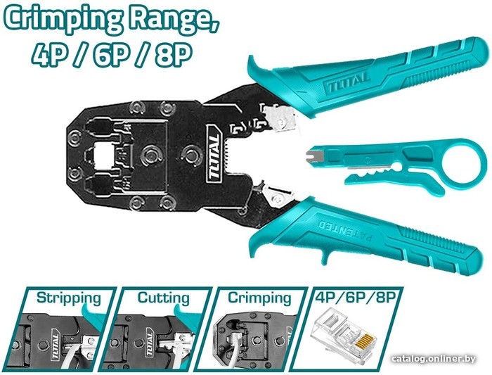 | Информация | Клещи для обжима телефонных кабелей TOTAL TMPC4468P |