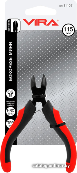 | Информация | Бокорезы мини VIRA 4.5" двухкомпонентные ручки. Мини бокорезы VIRA, длиной 114 мм. разрезают провода, проволоку, крепеж, но выполнены в меньшем размере, в сравнении с исходной моделью длиной 180 мм. Рабочая часть инструмента выполнена из высокоуглеродистой стали CS55. Твердость режущих граней 56-62 HRC. Рукоятки выполнены из прочного пластика и упругой резины TPR. Такое сочетание материалов дает прочность одновременно с мягкостью на ощупь. |