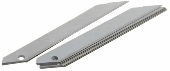 | Информация | Лезвия сегментированные — лезвия для графических работ, используются в качестве сменных элементов в ножах с шириной направляющей пластины 9 мм. Применяются для резки картона, бумаги, гибкой пластмассы, пленки, обоев. Заточка под углом 30°, что позволяет выполнять точные и аккуратные разрезы в проектах требующих детальной работы. Габариты — 16?6?1 см. |