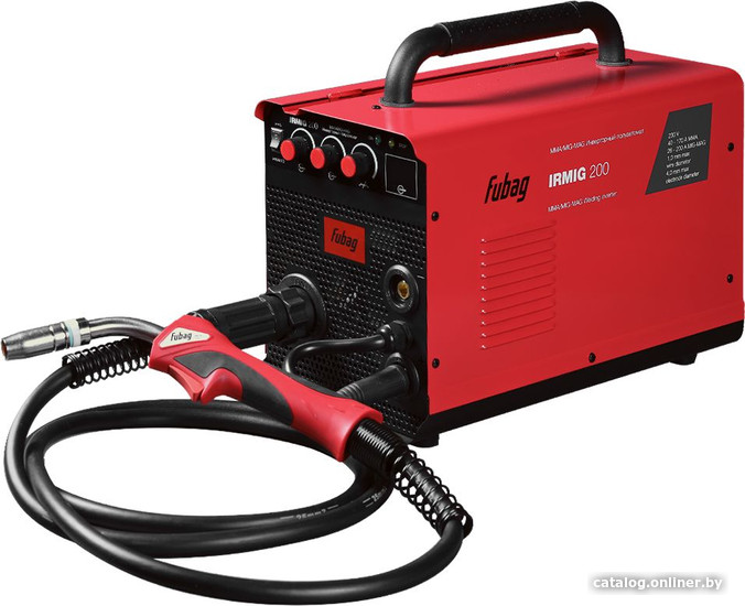 | Информация | Сварочный полуавтомат Fubag IRMIG 200 – универсальный, работающий в режимах MIG-MAG и MMA сварки в самом распространенном диапазоне сварочного тока 26-200 А. Работает с проволокой диаметром 0,6-0,8/0,8-1,0 мм на катушке весом 5 кг и диаметром 200 мм.###BR######BR###Отличный выбор при проведении сварочных работ повышенной сложности на производстве или на стройке. Высокую производительность сварочных работ обеспечивает автоматическая подача проволоки. Регулировка подачи проволоки, сварочного напряжения и индуктивности позволяет настроить оптимальный режим сварки. Модель поставляется в обновленной комплектации – с горелкой 250А внутри коробки. Аппарат снабжен регулировкой индуктивности для снижения количества брызг за счет более точной настройки сварочной дуги. Цифровой дисплей на передней панели отображает текущий сварочный ток.###BR######BR###Передняя панель аппарата снабжена 2 ручками: одна отвечает за регулировку тока сварки и скорость подачи проволоки; вторая – за управление выходным напряжением, что позволяет быстро и просто выбирать режимы и оптимальные параметры сварки. В новом дизайне аппарат получил дополнительную защитную решетку, установленную за передней панелью, для защиты от пыли и других внешних воздействий.###BR######BR###Сварочный полуавтомат Fubag IRMIG 200 оснащен евроразъемом для быстрого и безопасного подключения сварочной горелки. Купив сварочный инвертор IRMIG 200, Вы получите в комплекте трехметровую фирменную горелку 250A и трехметровый газовый шланг, а также кабель с электрододержателем (1,6 м) и кабель заземления (3 м). Продолжительность включения (ПВ) в режиме MIG составляет 25% при 40С. Эти данные приведены в соответствии с европейским стандартом EN60974-1 при внешней температуре 40С. Часто на рынке используется значение ПВ при температуре окружающей среды 20С: чем ниже температура, тем выше ПВ.###BR######BR###Сварочный полуавтомат Fubag IRMIG 200 имеет возможность легкой сменой полярности для работы с самозащитной проволокой. Эффективная система охлаждения, а также встроенная функция термозащиты с индикацией перегрева гарантируют долговечность и надежность использования аппарата в условиях интенсивной эксплуатации. Быстрое подключение сварочных кабелей и евроразъем для подключения горелки гарантируют удобство использования. Все технические характеристики наглядно и подробно указаны на корпусе аппарата. Сварочный полуавтомат Fubag IRMIG 200 поставляется с полным набором аксессуаров для MIG/MAG и ММА сварки . В интернет-магазине fubag.ru вы можете скачать инструкцию по подключению и использованию сварочного полуавтомата Fubag IRMIG 200, а также фотографии аппарата в различных ракурсах, его характеристики и полное описание.###BR######BR###26-200 А (MIG-MAG)###BR###40-170 А (MMA) |