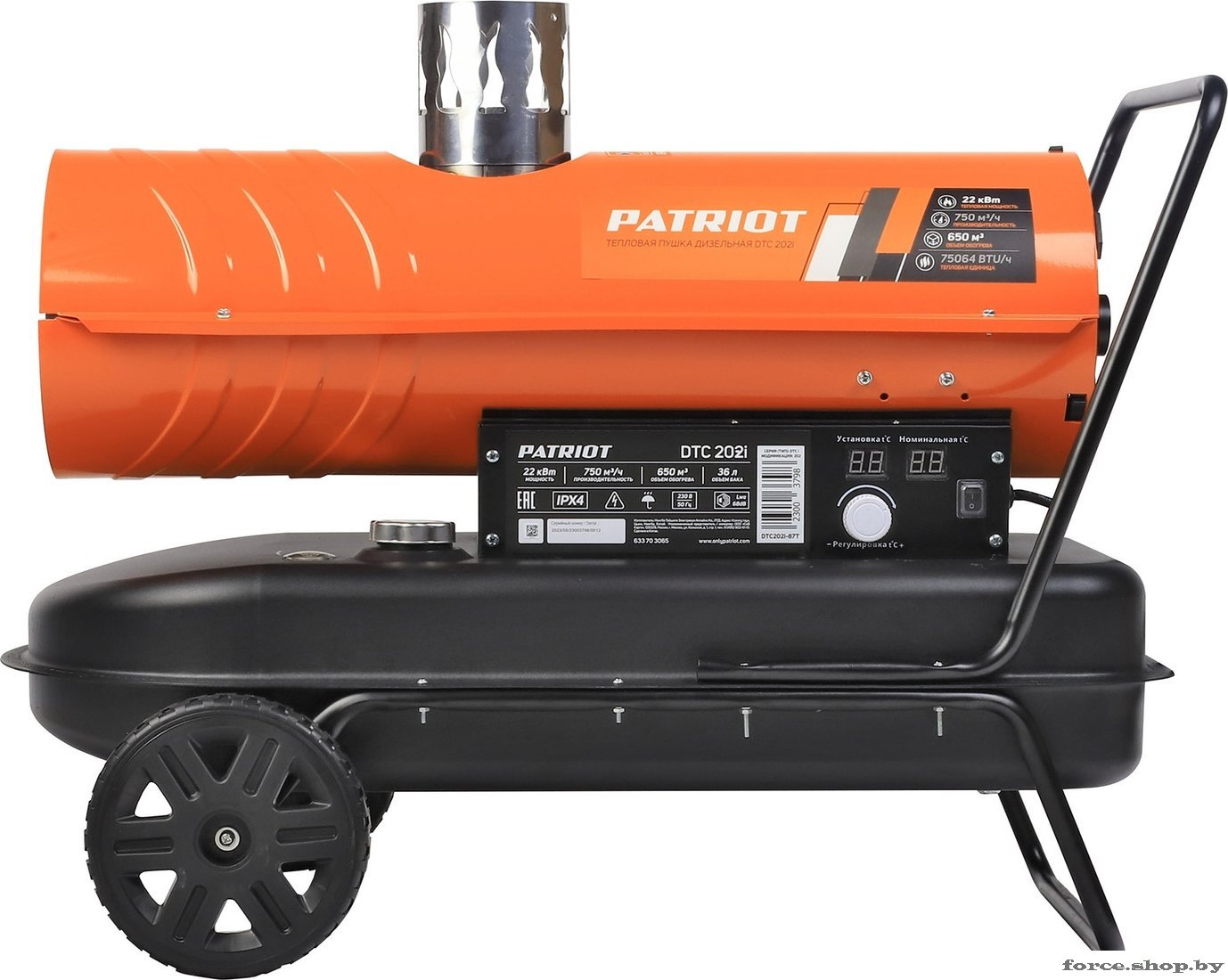 | Информация | - Patriot DTC 202i – это дизельная тепловая пушка непрямого нагрева, идеально подходящая для обогрева помещений, где постоянно находятся люди. ###BR######BR###- В процессе работы топливо почти полностью сгорает в камере сгорания, что позволяет нагревать многоконтурный воздушный теплообменник. Горячий воздух, проходя через теплообменник, поступает в помещение, а продукты сгорания выводятся через специальный отвод в верхней части устройства.###BR######BR###- Устройство оборудовано современными системами автоматического распознавания неисправностей, контроля и регулировки пламени, а также защитой от перегрева. Температура на выходе регулируется с помощью цифрового термостата.###BR######BR###- Преимущества использования Patriot DTC 202i:###BR######BR###- Обеспечивает безопасный обогрев помещений с постоянным пребыванием людей. ###BR###- Высокий коэффициент полезного действия (КПД). ###BR###- Системы поддержания заданной температуры. ###BR###- Функция самодиагностики ошибок работы. ###BR###- Два цифровых дисплея для удобства. ###BR###- Встроенный манометр для контроля давления. ###BR###- Датчик уровня топлива для своевременной заправки. ###BR###- Простота в обслуживании. ###BR###- Возможность работы под дождем благодаря уровню защиты IP X4. |